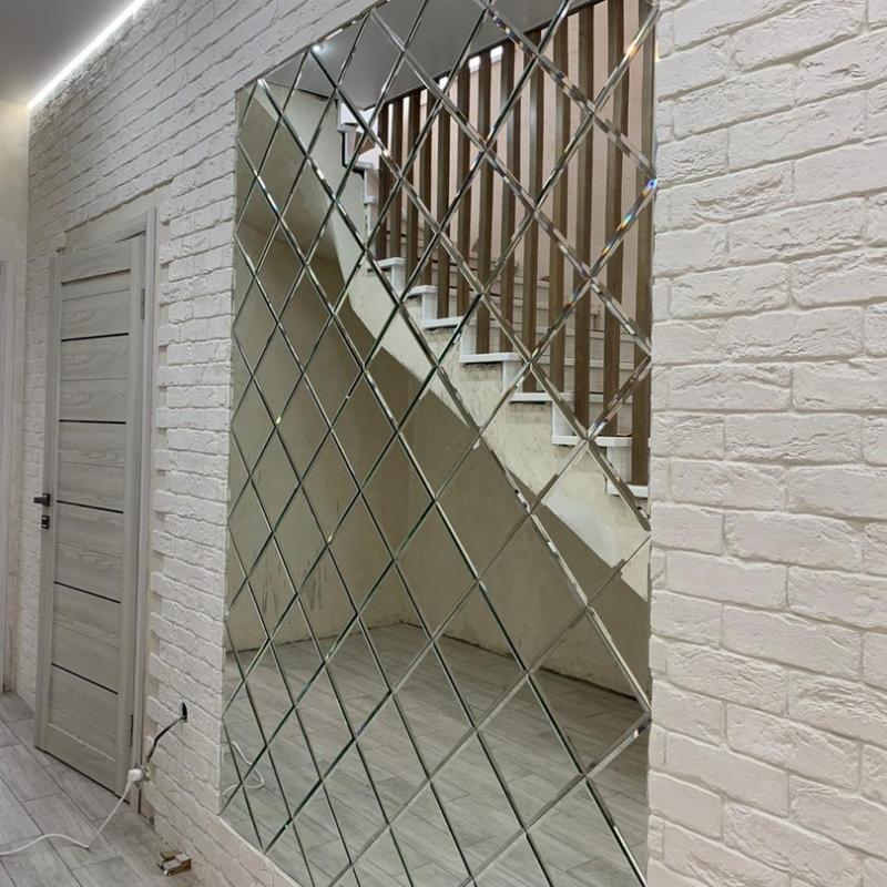 Использована зеркальная плитка "вытянутый ромб" с фацетом.