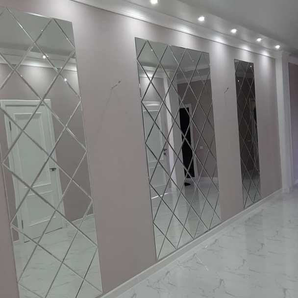 Использована серебристая зеркальная плитка "вытянутый ромб".